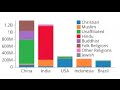 Covers how to add an additional dimension of data to a bar chart. Rectangles are split into stacked bars using d3 nest and d3 stack layout, giving a new view into the breakdown of religions across the largest 5 countries.